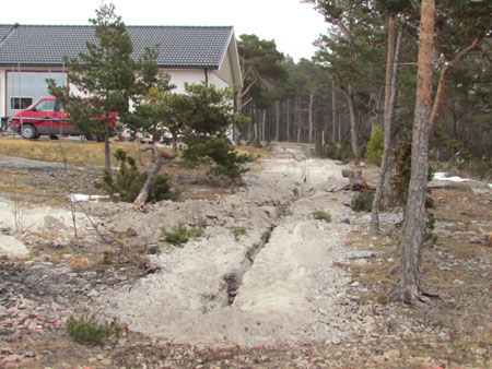 Här syns fräsningen från cykelbanan vid Lummelundsväg in söder om villorna. |