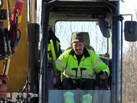 John knackar sig igenom den hårt packade vägen. En smal fin ränna skapas. |